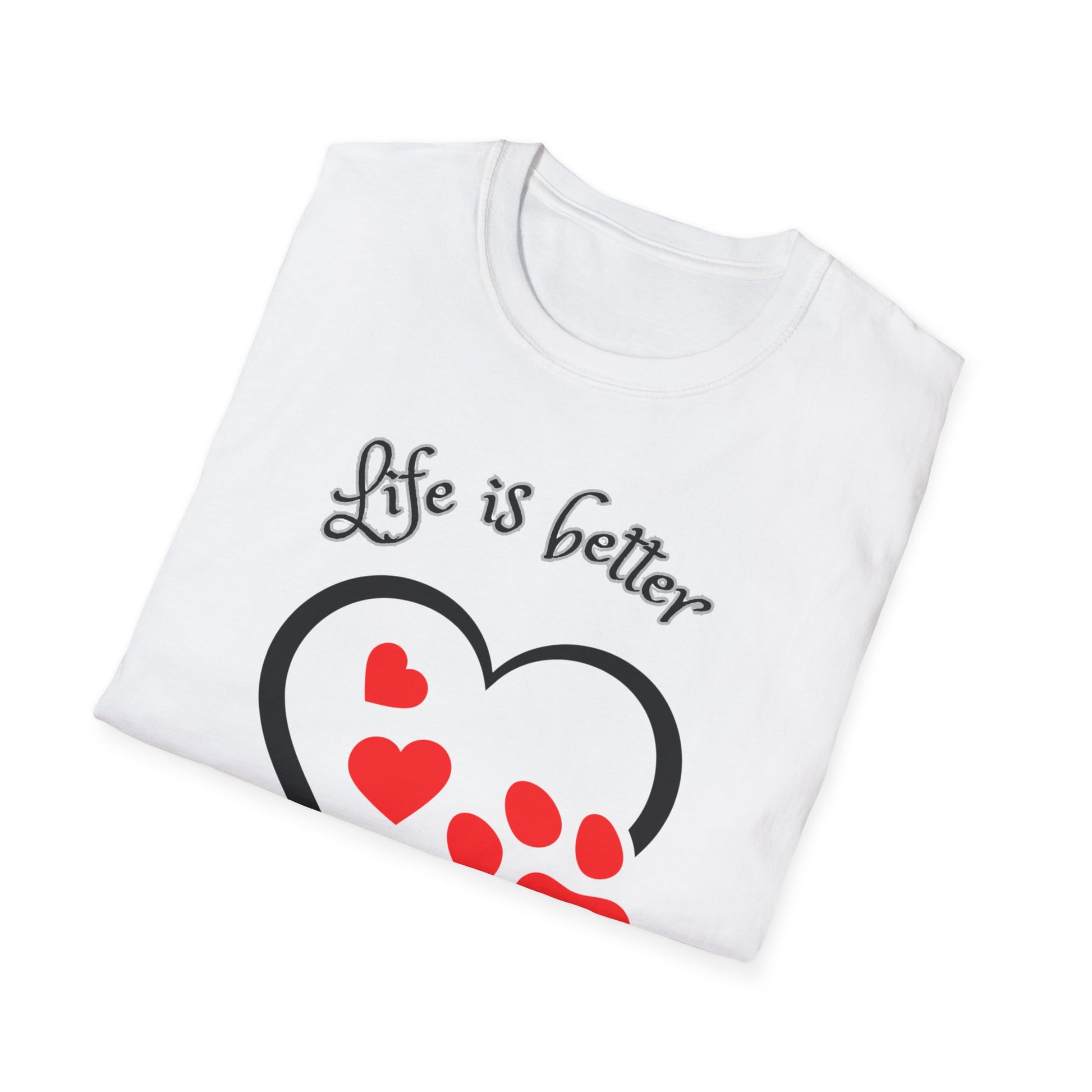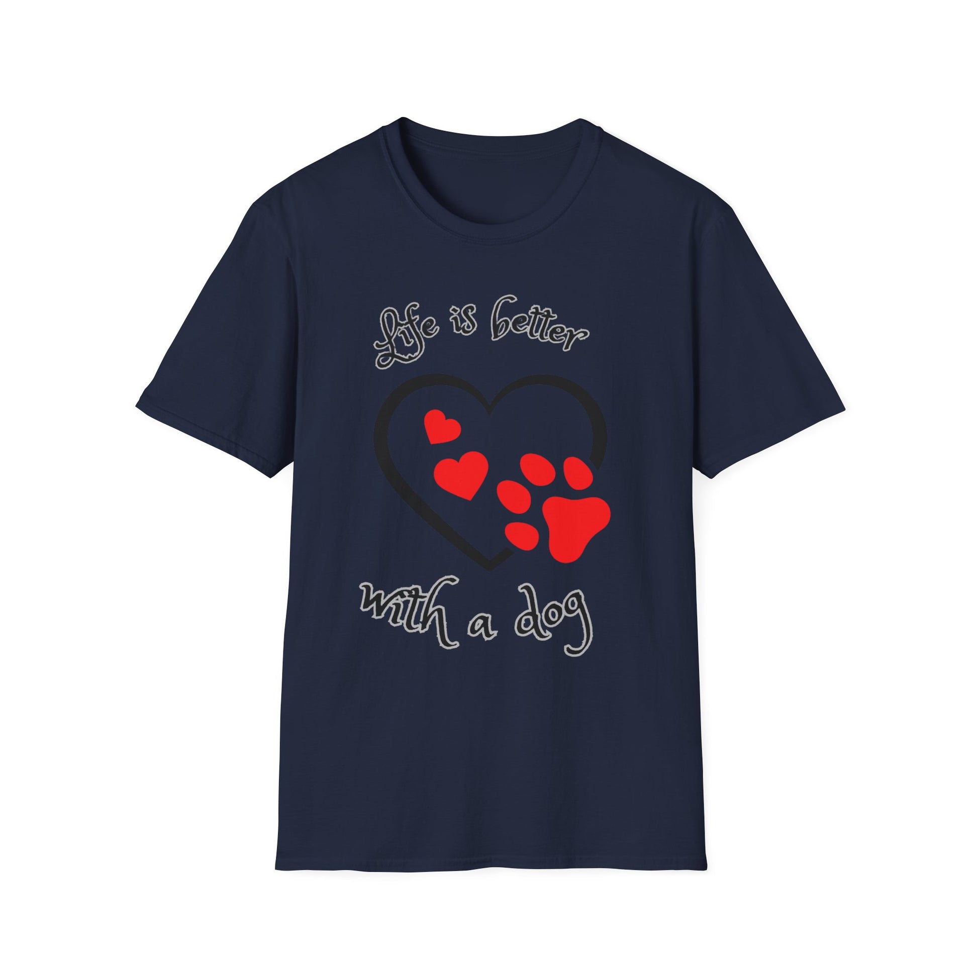 Dog Lover T-Shirt — "Life Is Better With a Dog" Heart & Paw Design