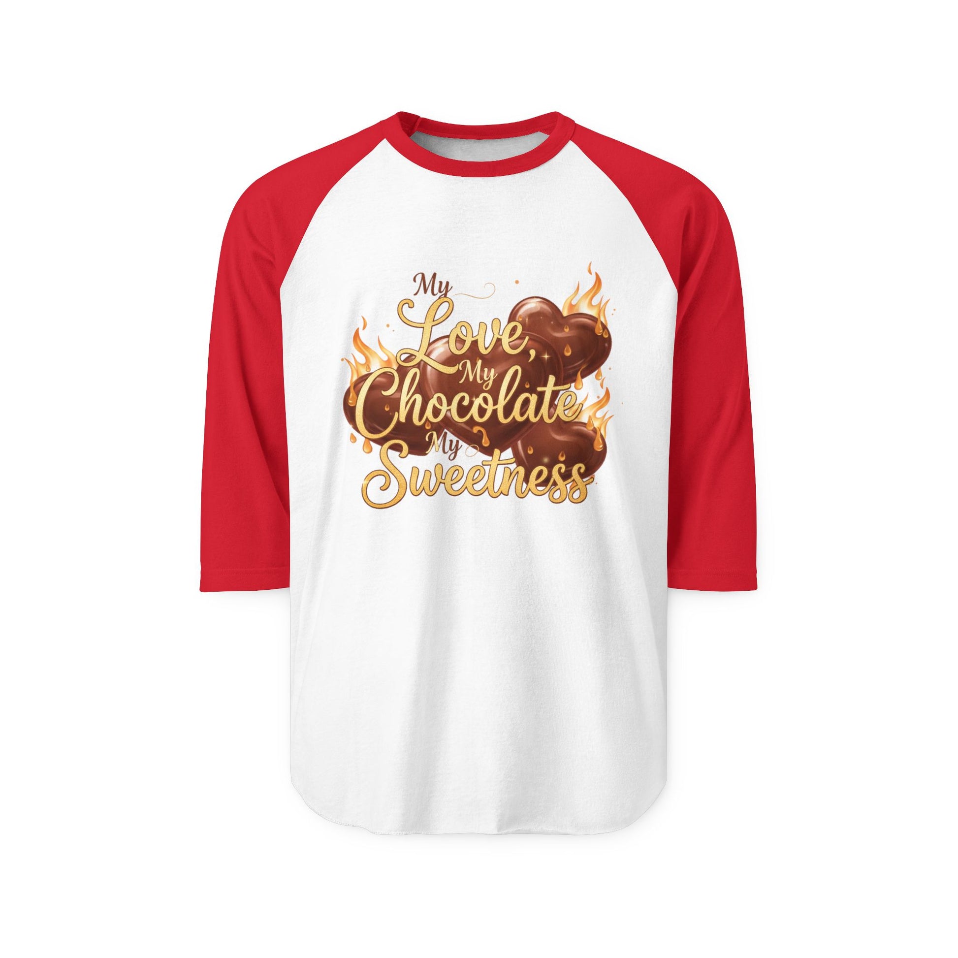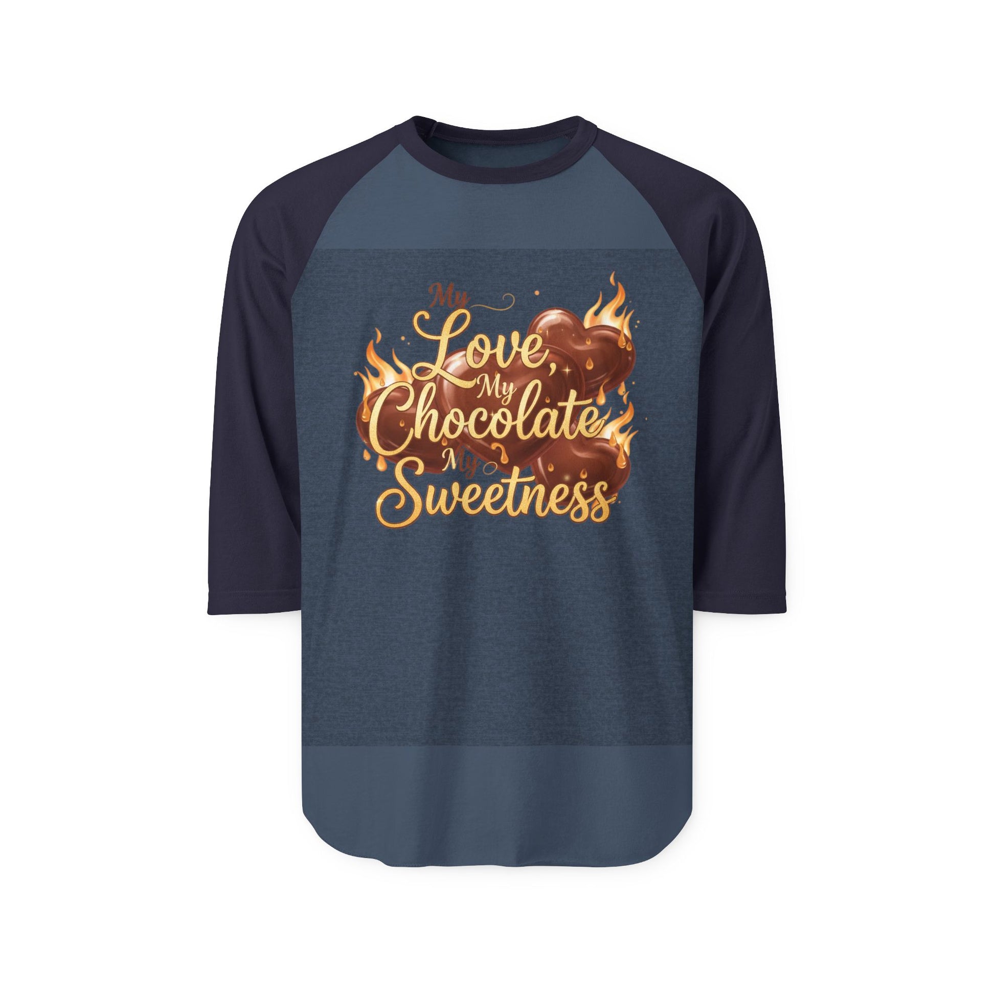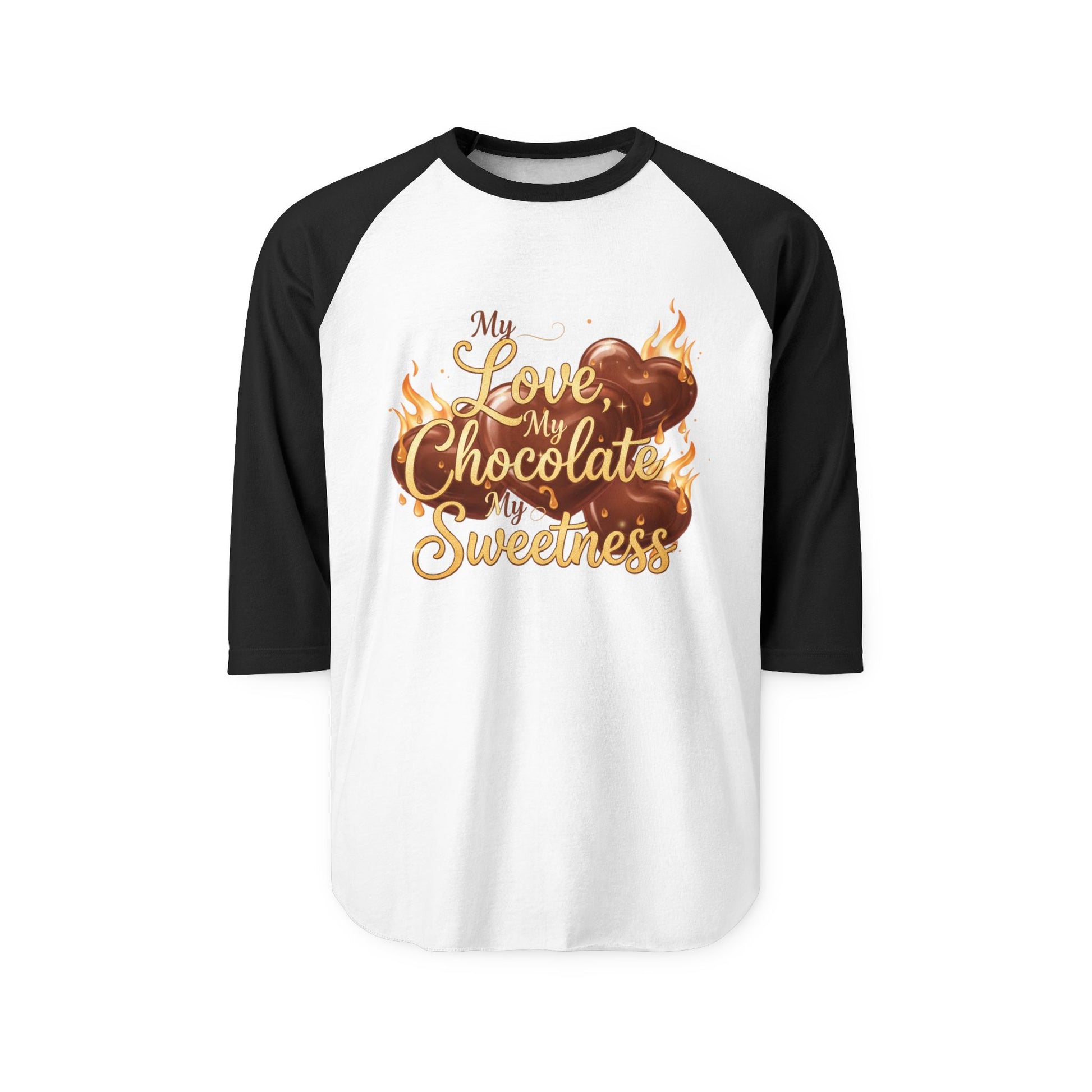 Say it like it is — soft, simple, and intimate. This three-quarter sleeve raglan holds a small, tender phrase: “My love, my chocolate, my sweetness.” It sits close to the chest and reads like a quiet note passed across a kitchen table. The lightweight, fine-knit cotton drapes easily over shoulders and arms, so movements feel natural — reaching for coffee, wrapping someone in a hug, or slowing down to linger on a porch at dusk. Colors stay true wash after wash, and the tear-away tag keeps the back of the neck smooth against skin. Wear it layered under a jacket for cool evenings or alone when you want something that says gentle devotion without shouting.