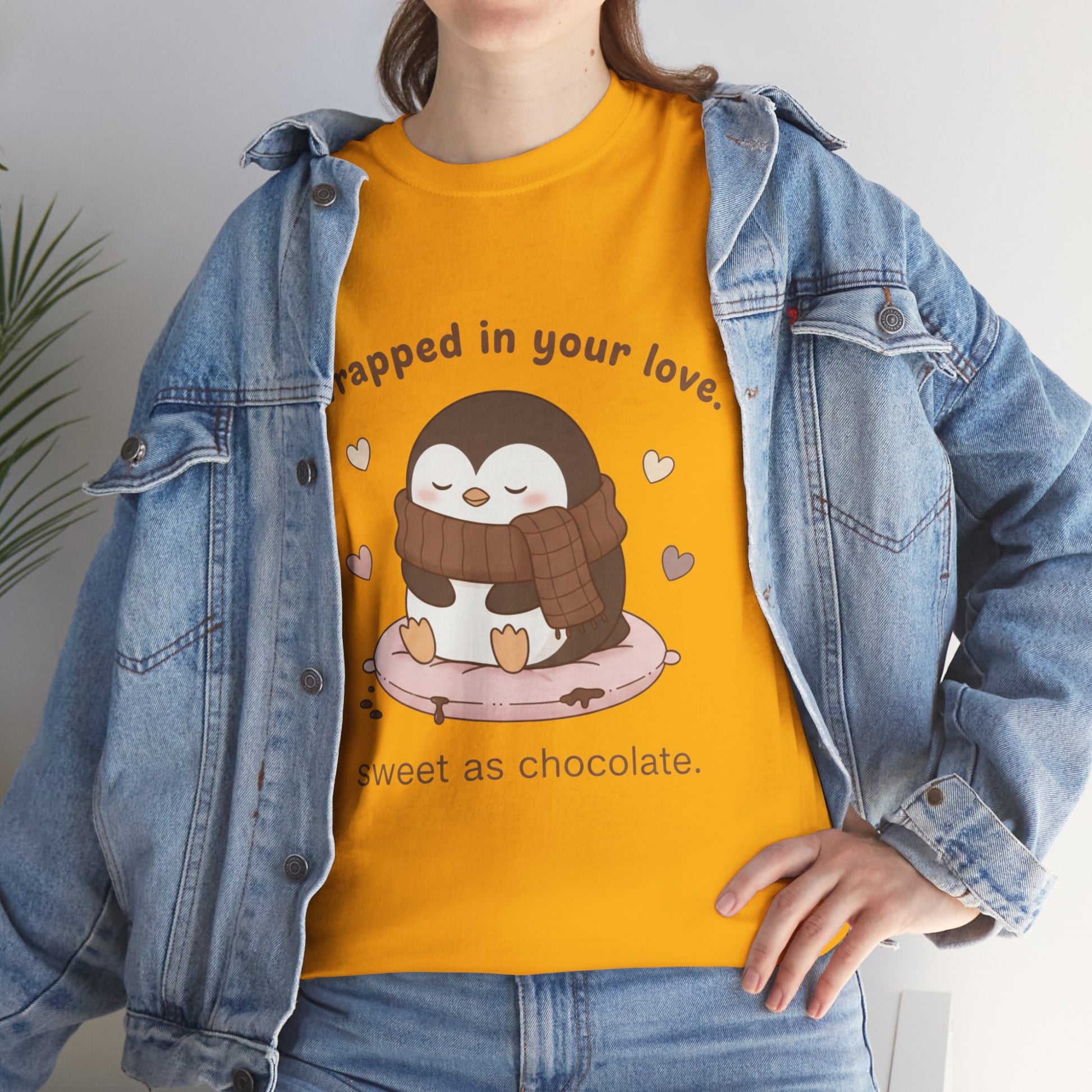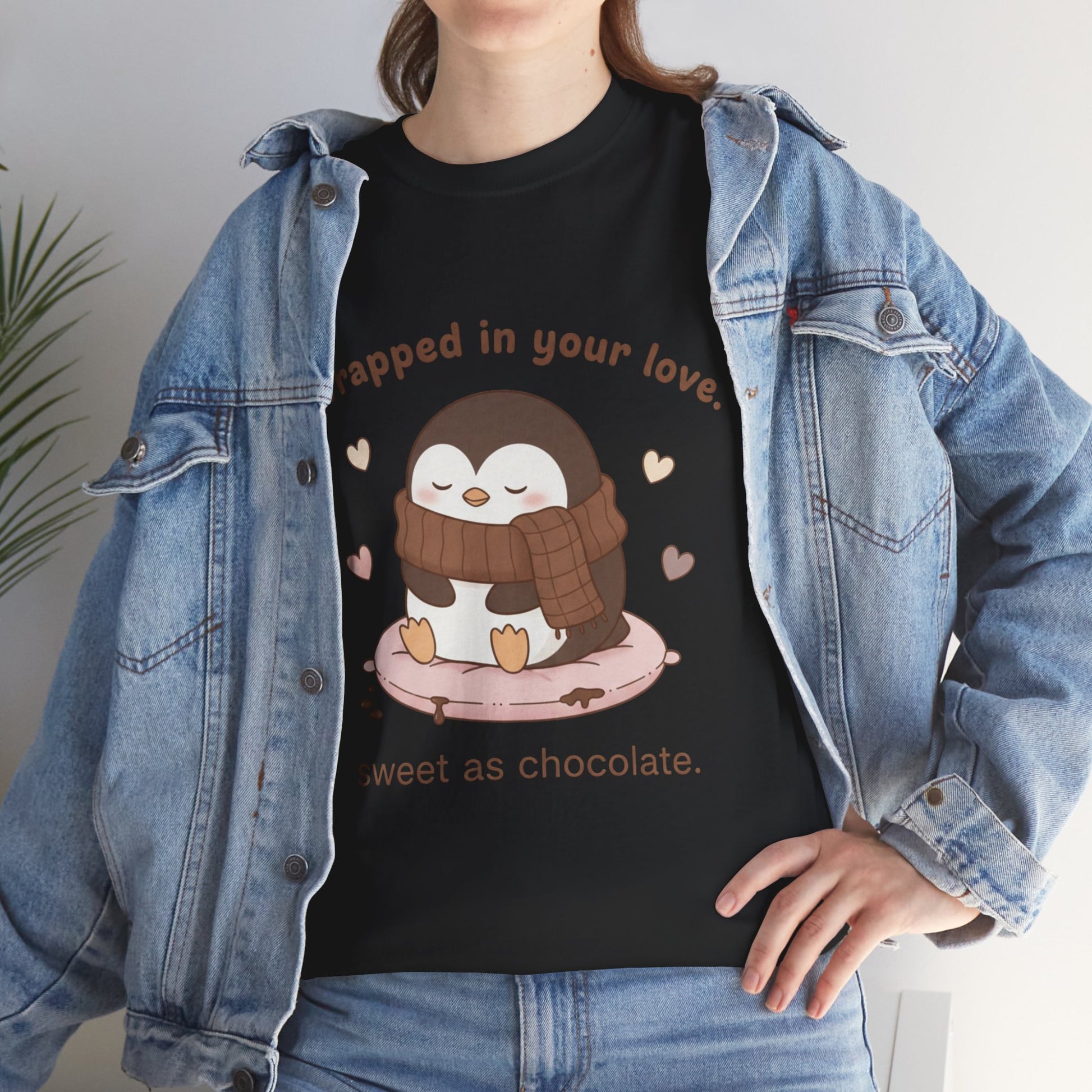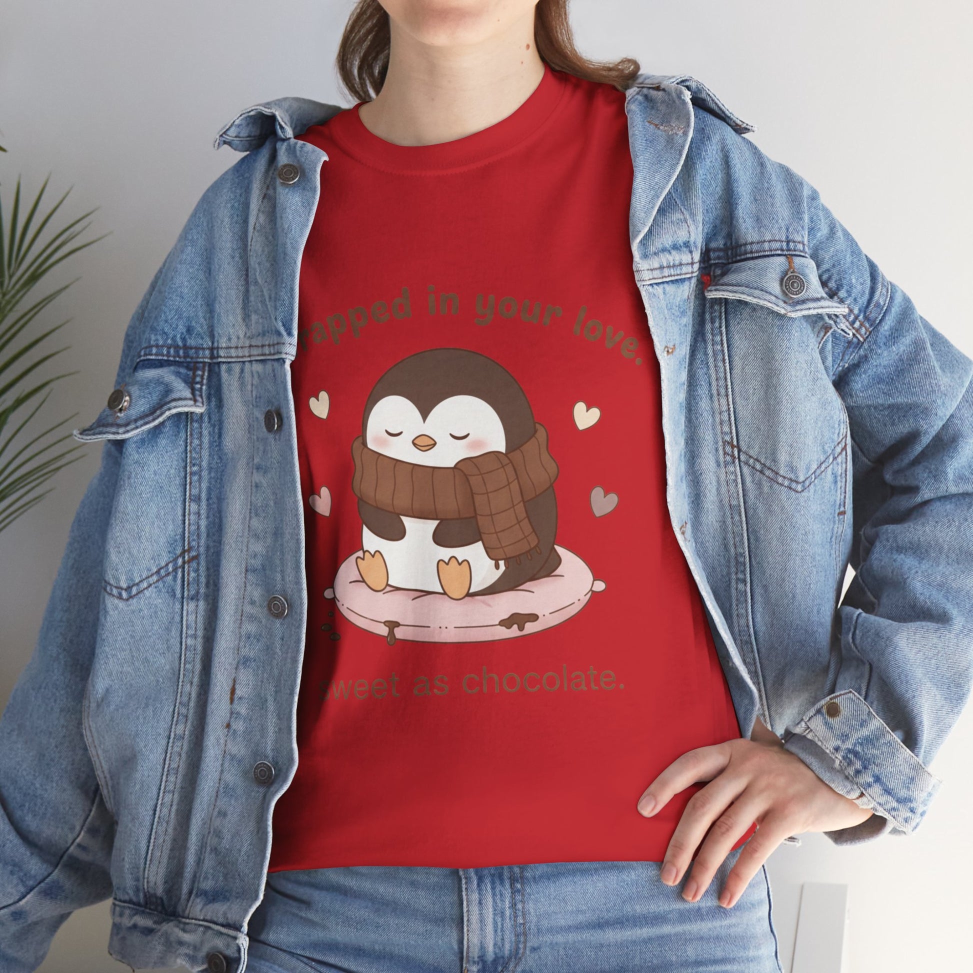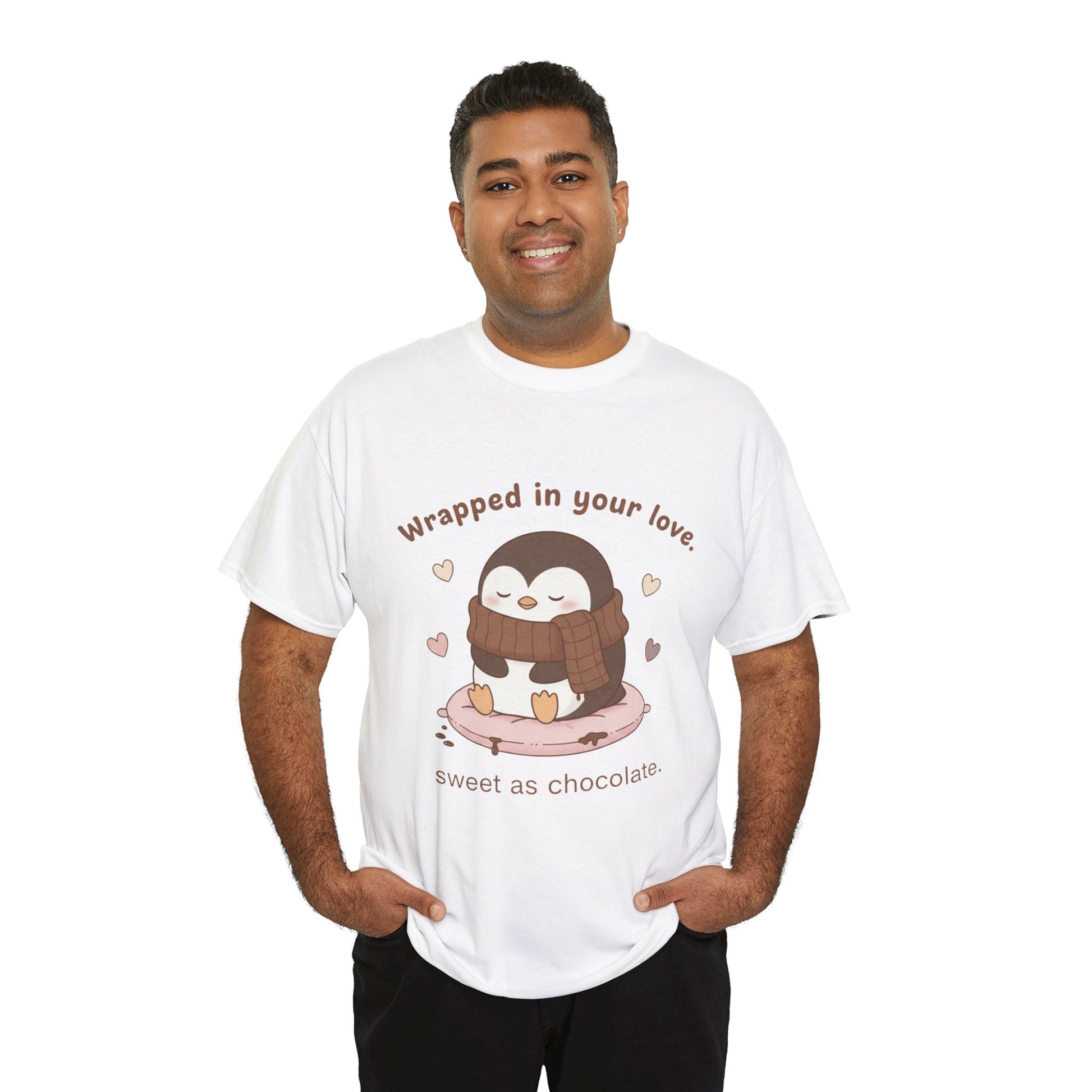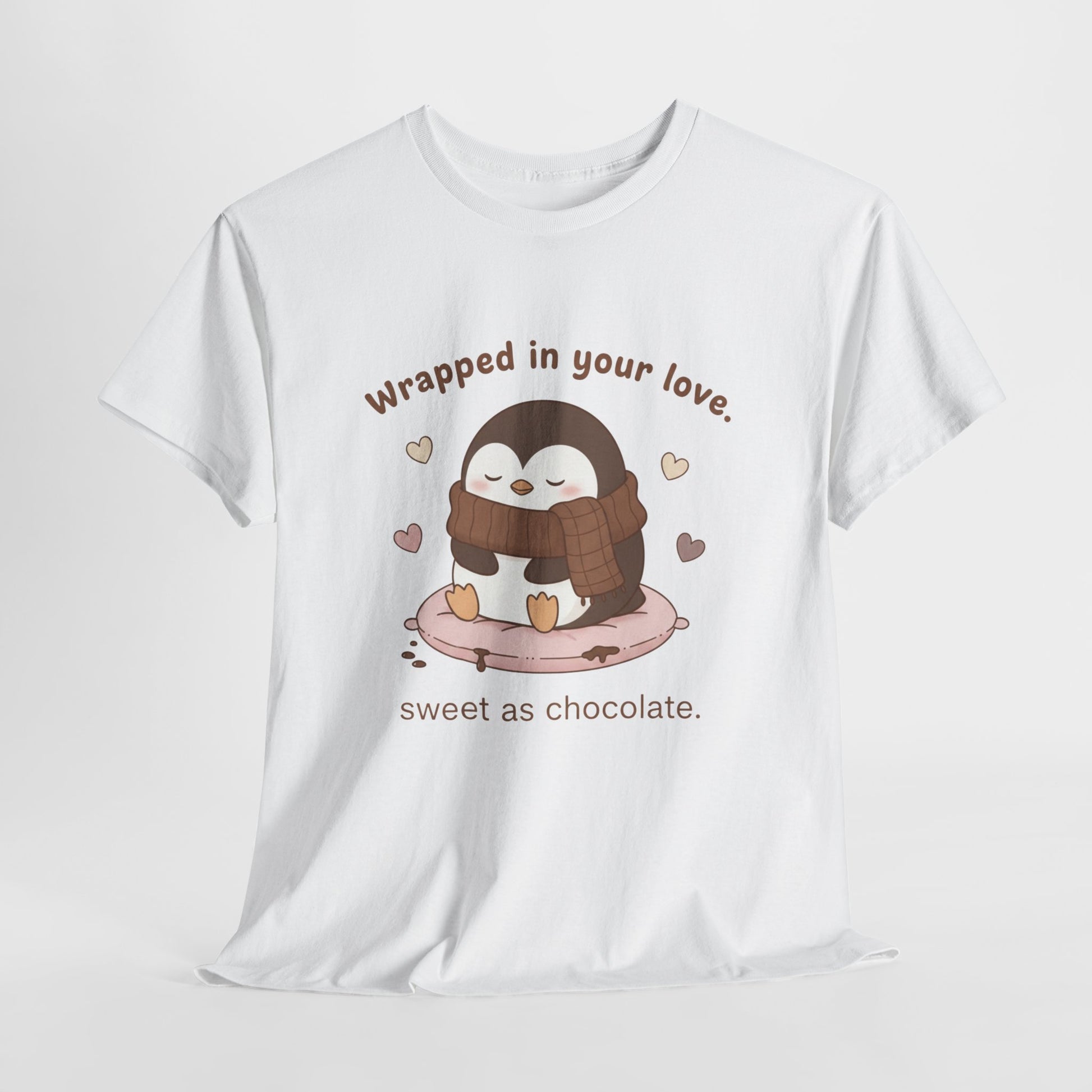 Penguin 'Wrapped in Your Love' Tee — Cute Valentine Chocolate Shirt