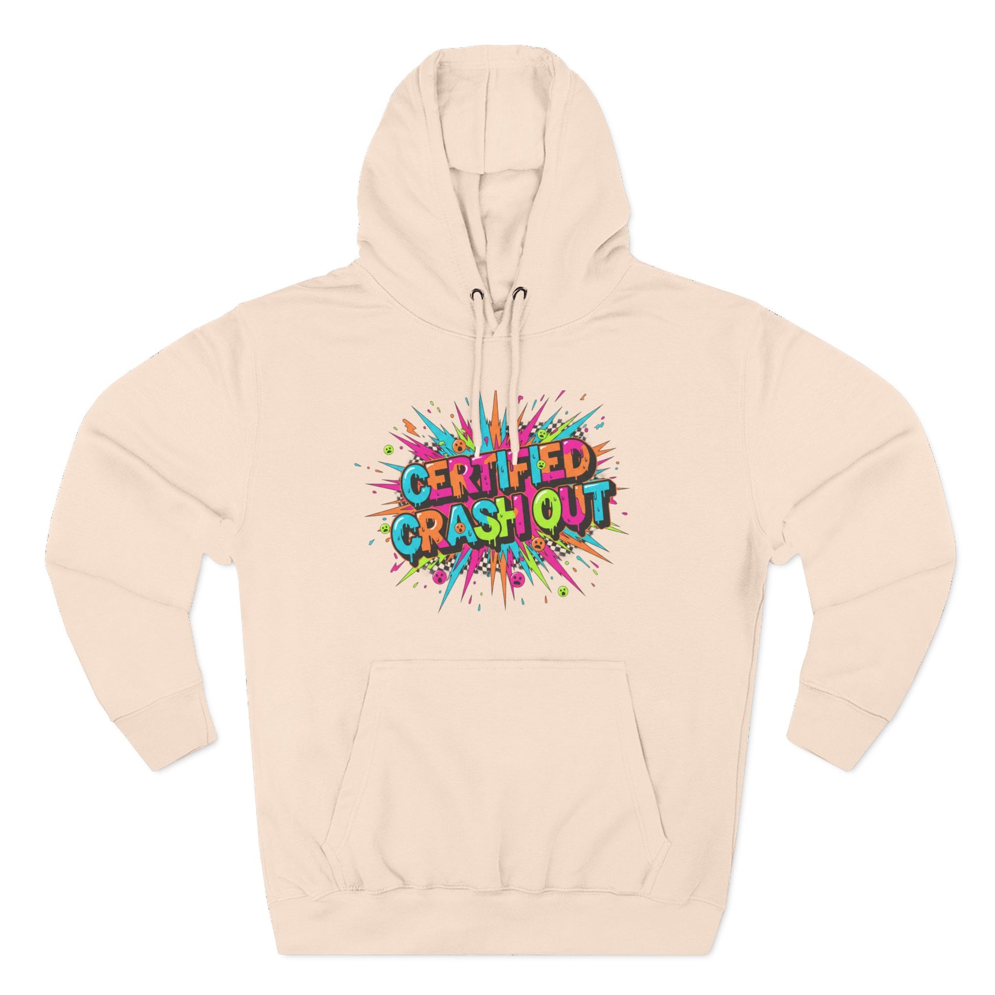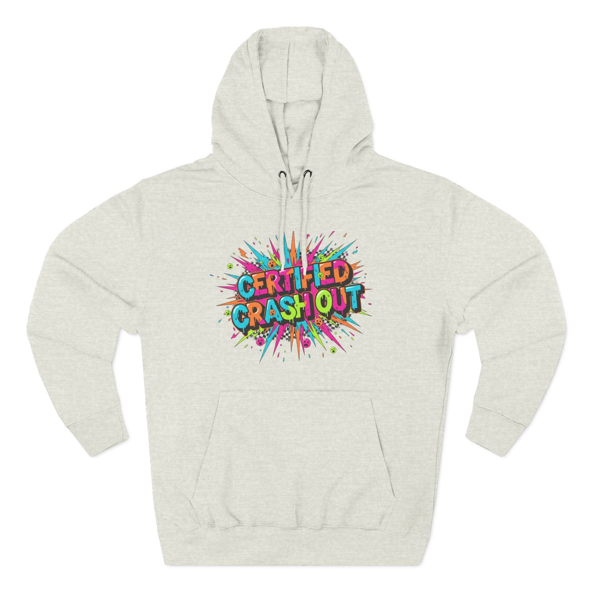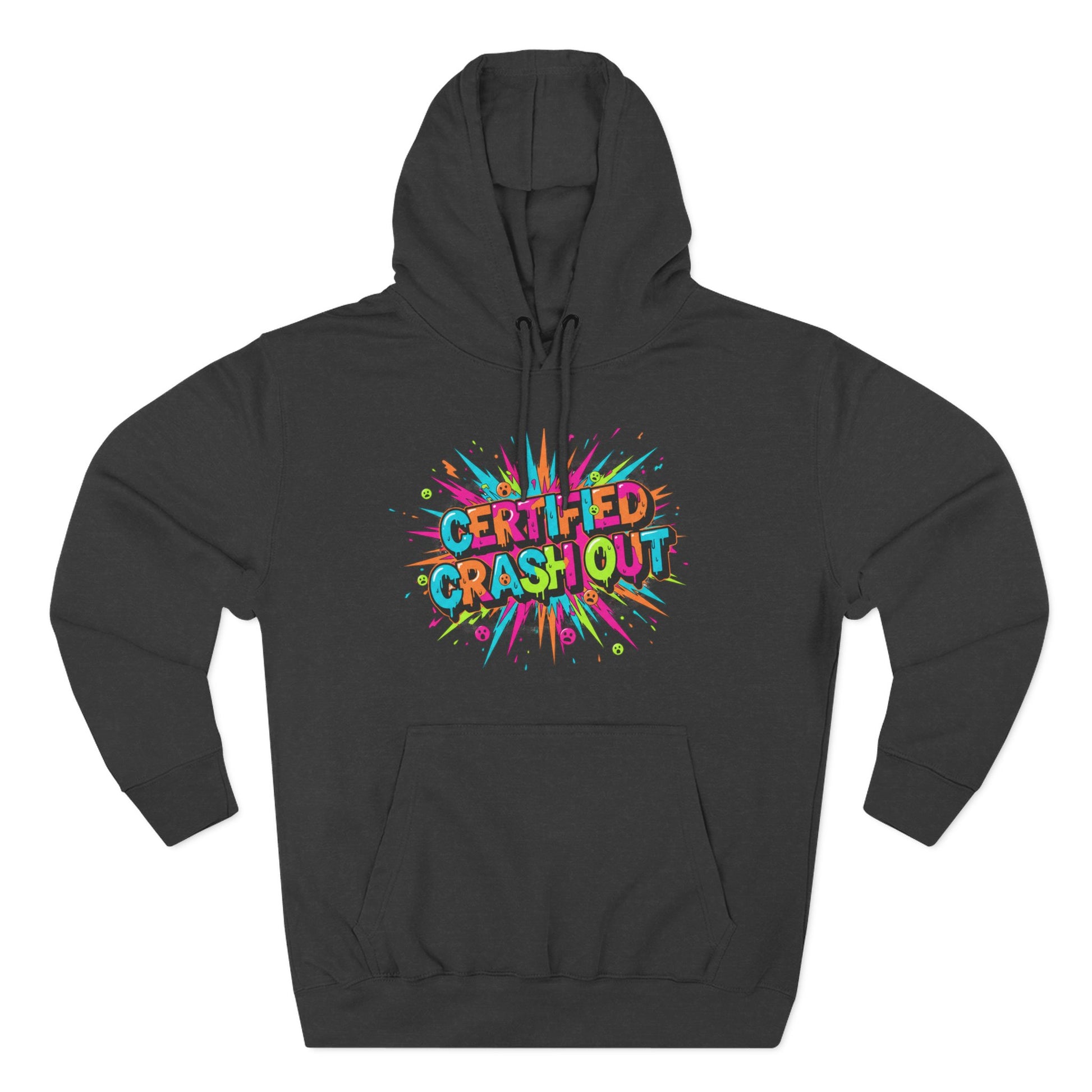 Certified Crash Out Hoodie — Colorful Splash Graphic Fleece Hooded Sweatshirt