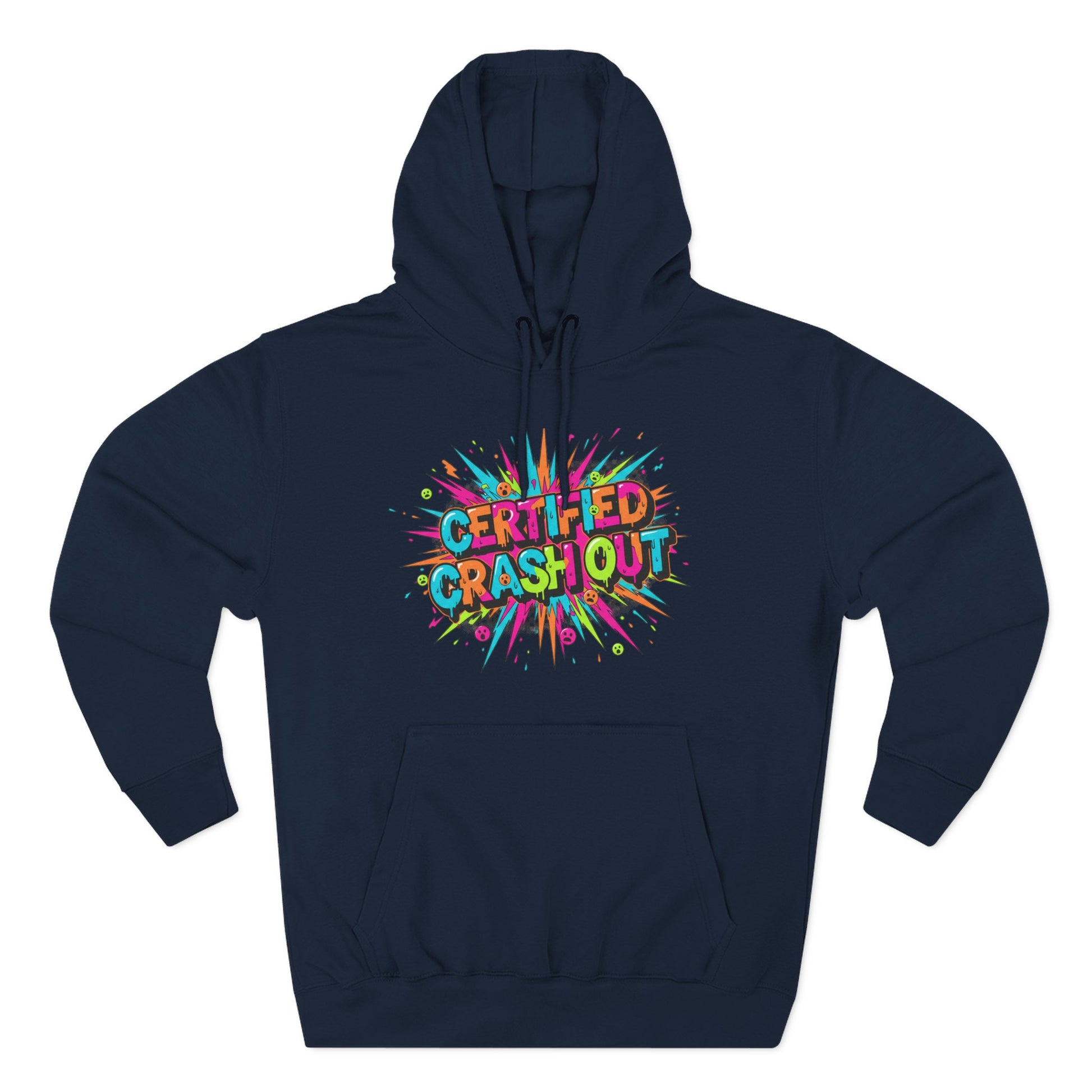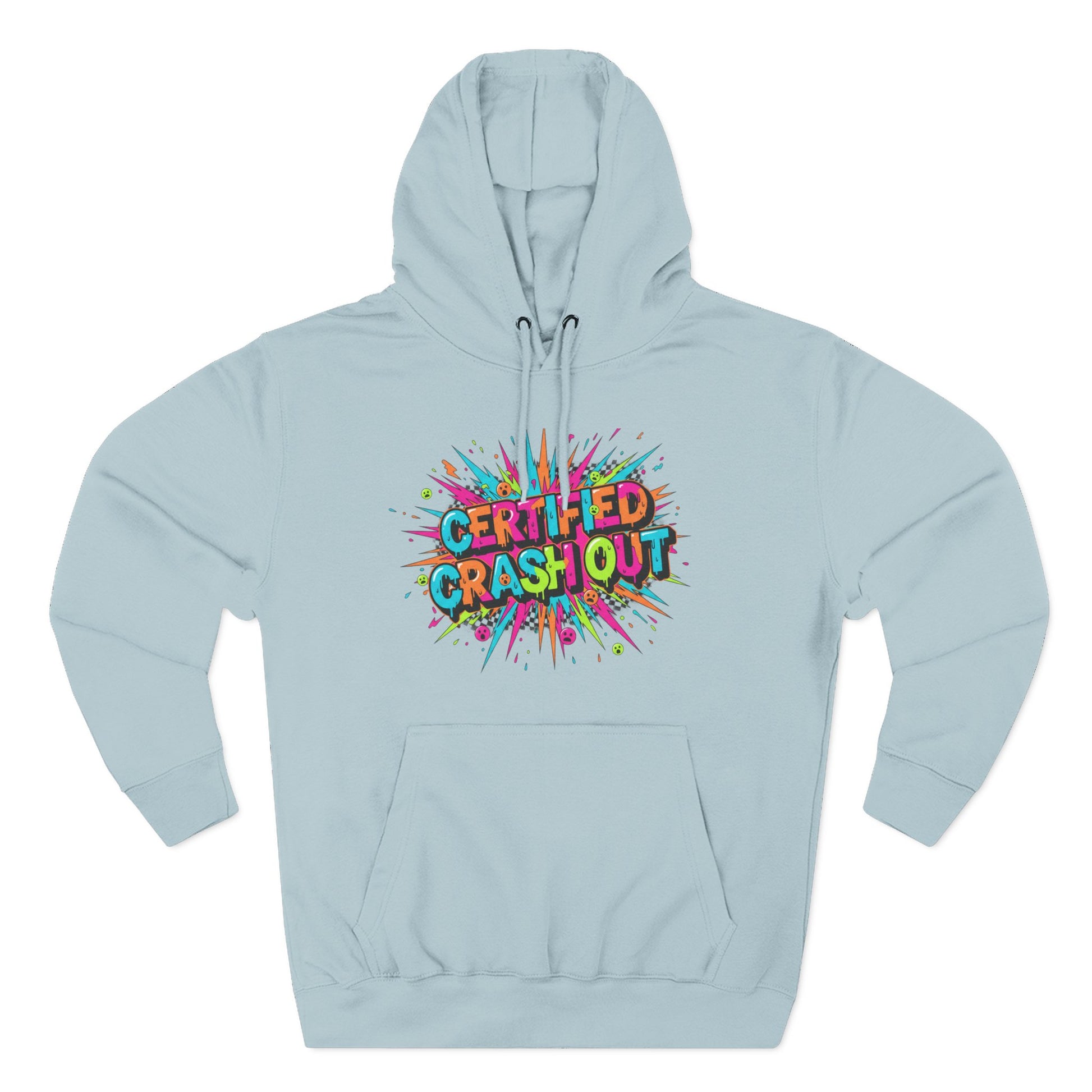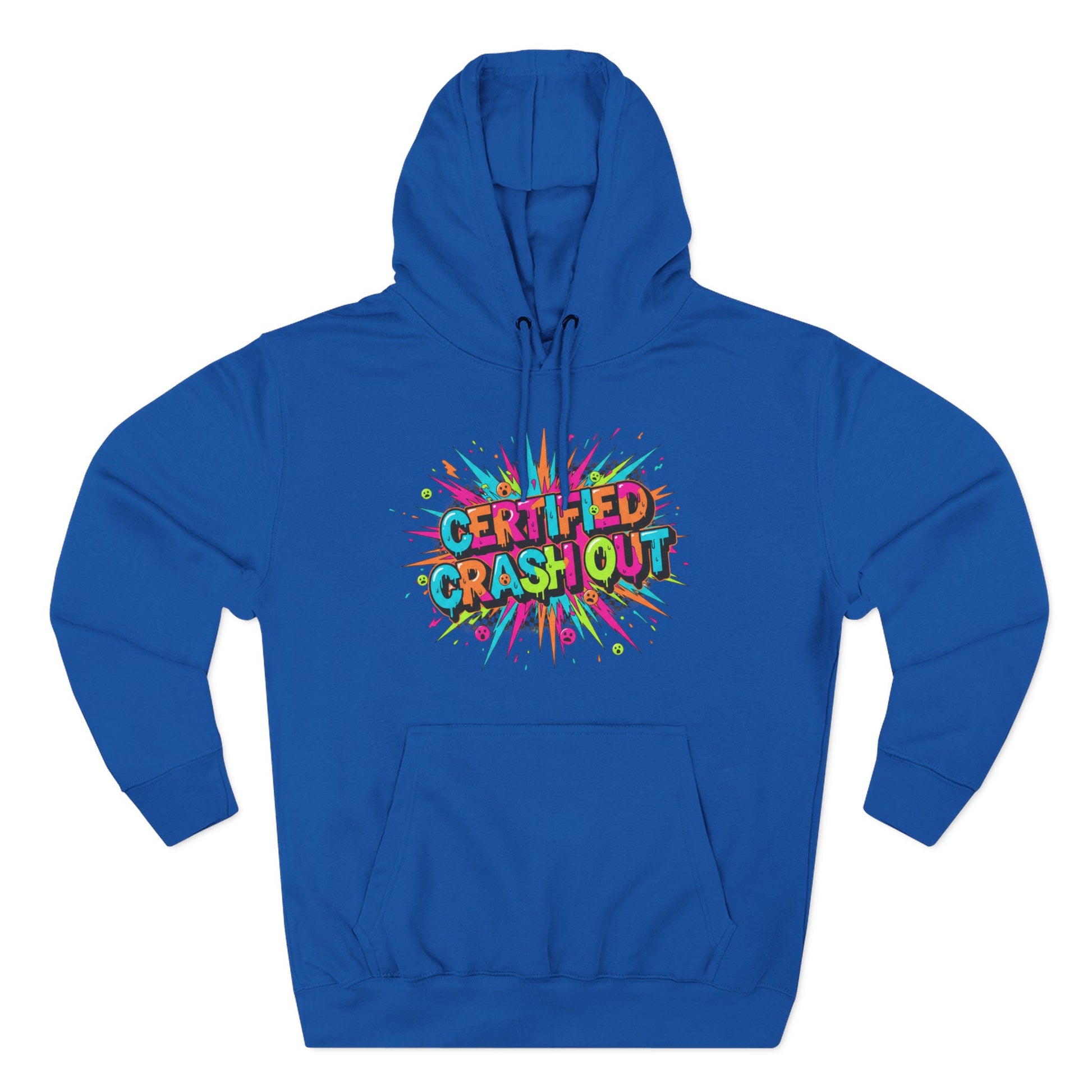 Certified Crash Out Hoodie — Colorful Splash Graphic Fleece Hooded Sweatshirt