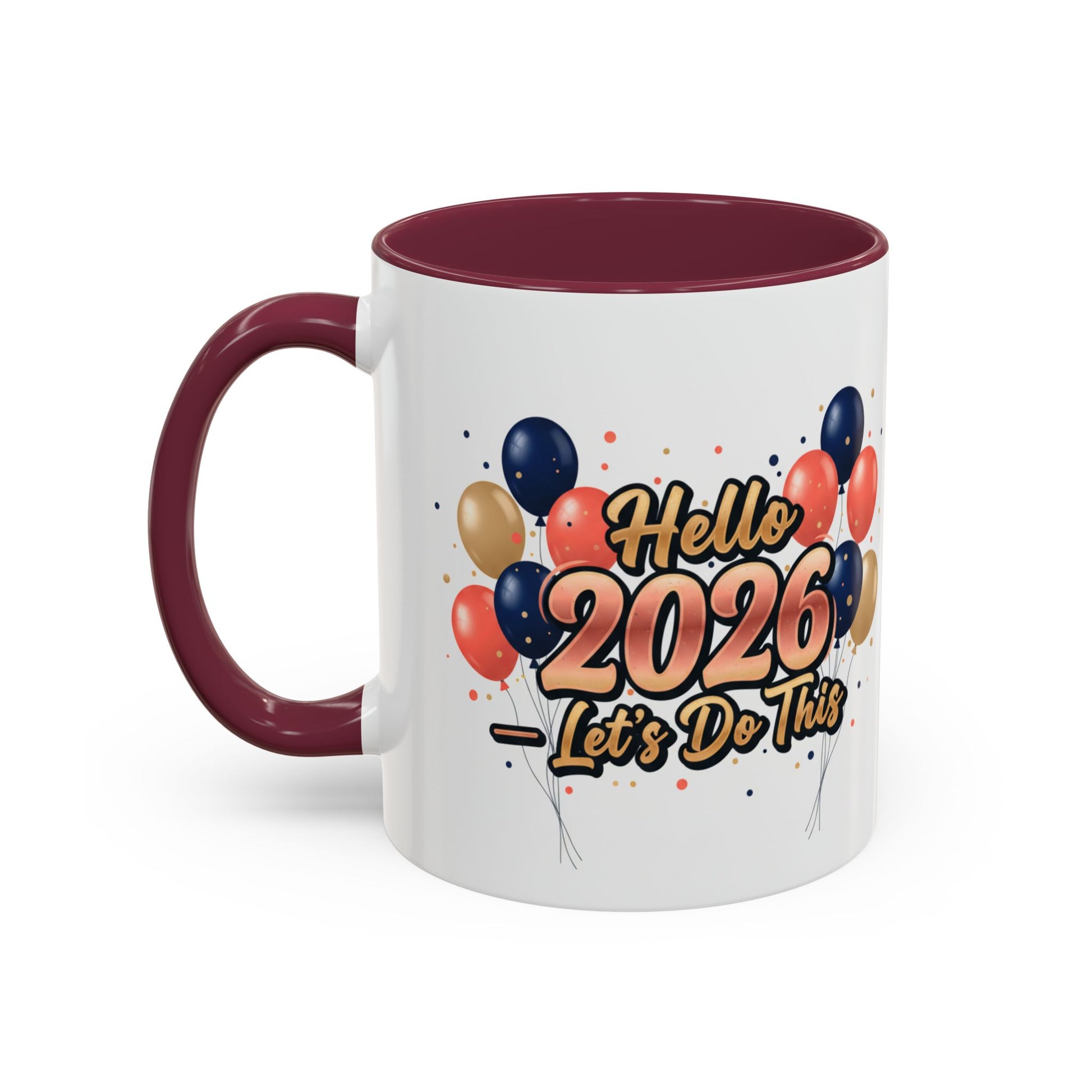 Start the year with a bright, celebratory mug that brings energy to your morning routine. This glossy ceramic mug features bold, confetti-speckled artwork and colorful balloon accents that feel like a tiny party on your counter. The colored interior and handle add an extra pop that matches your mood—choose from a dozen accent hues to make it yours. Whether it’s coffee before a big meeting or a quiet cup while planning goals, this mug keeps the vibe upbeat and hopeful. Durable ORCA coating preserves the vivid print through washes and microwaves, so the message stays lively for many mornings to come.