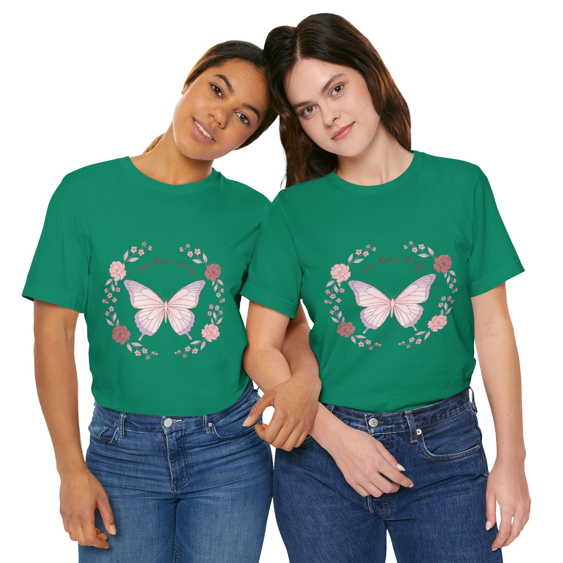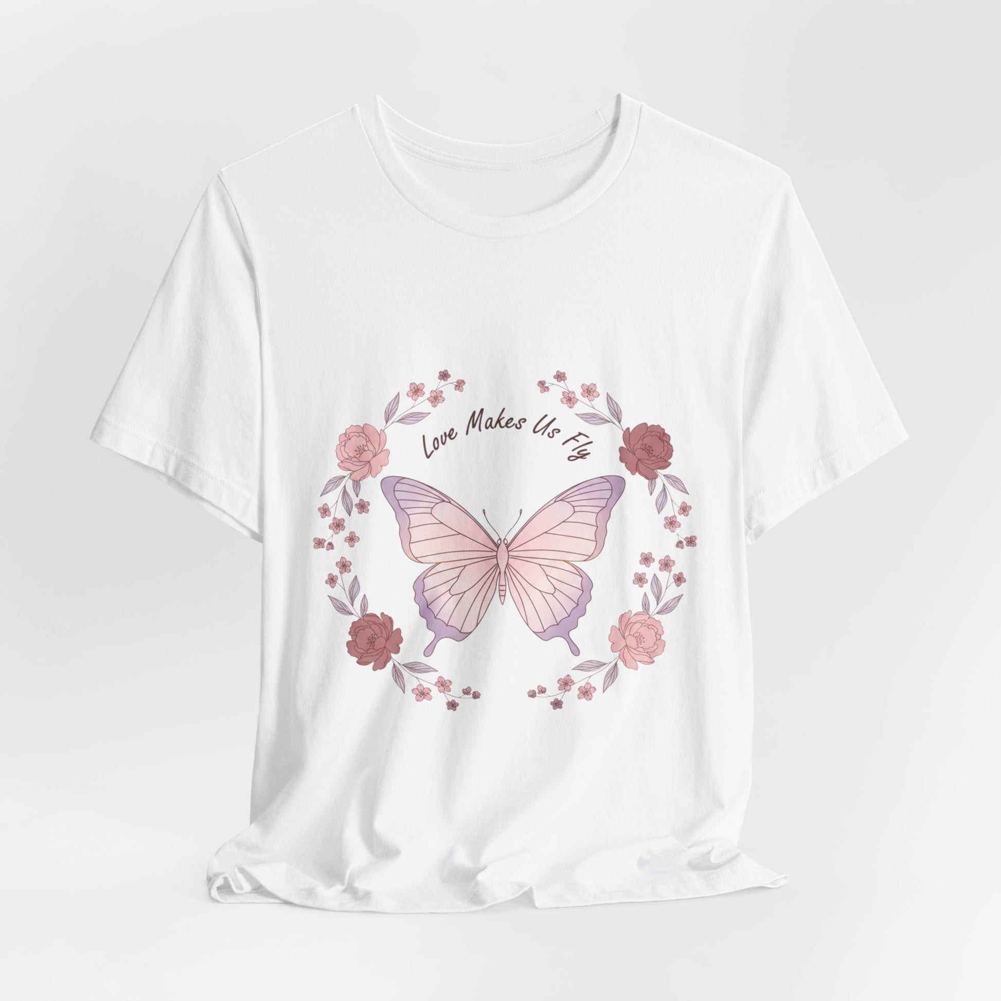 Love Makes Us Fly Butterfly T-Shirt — Floral Butterfly Love Tee