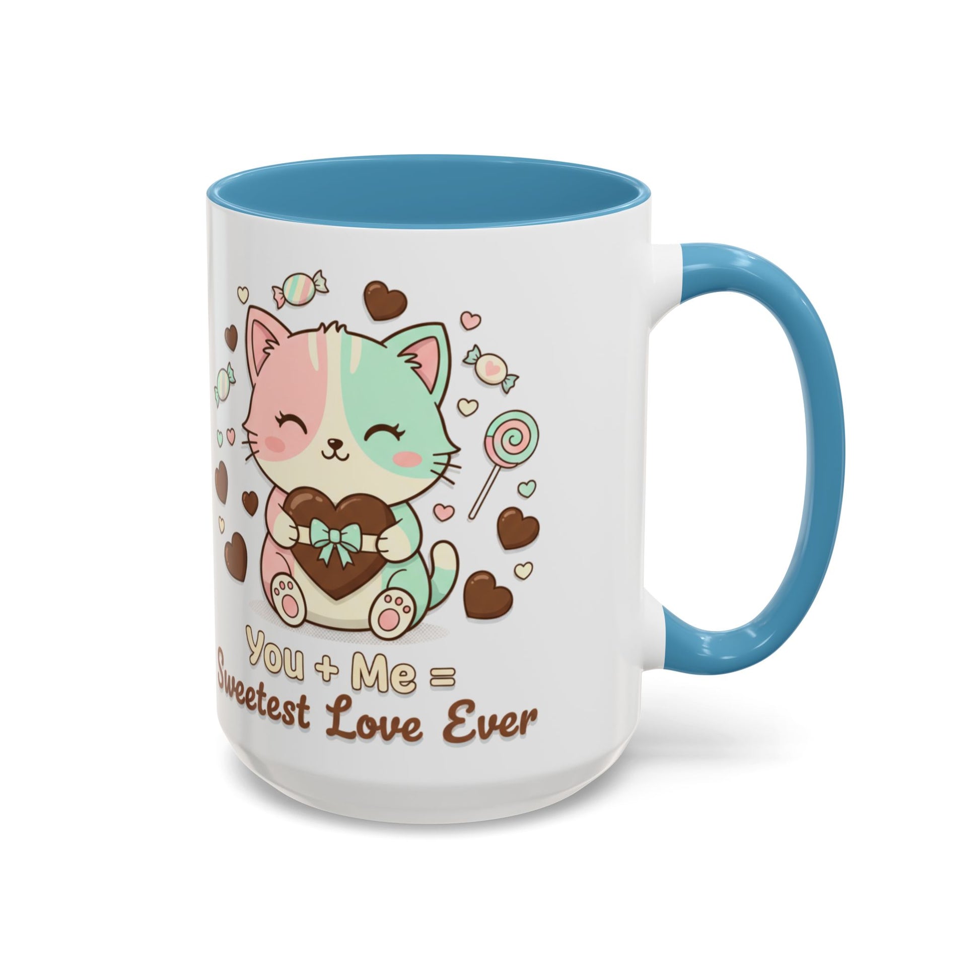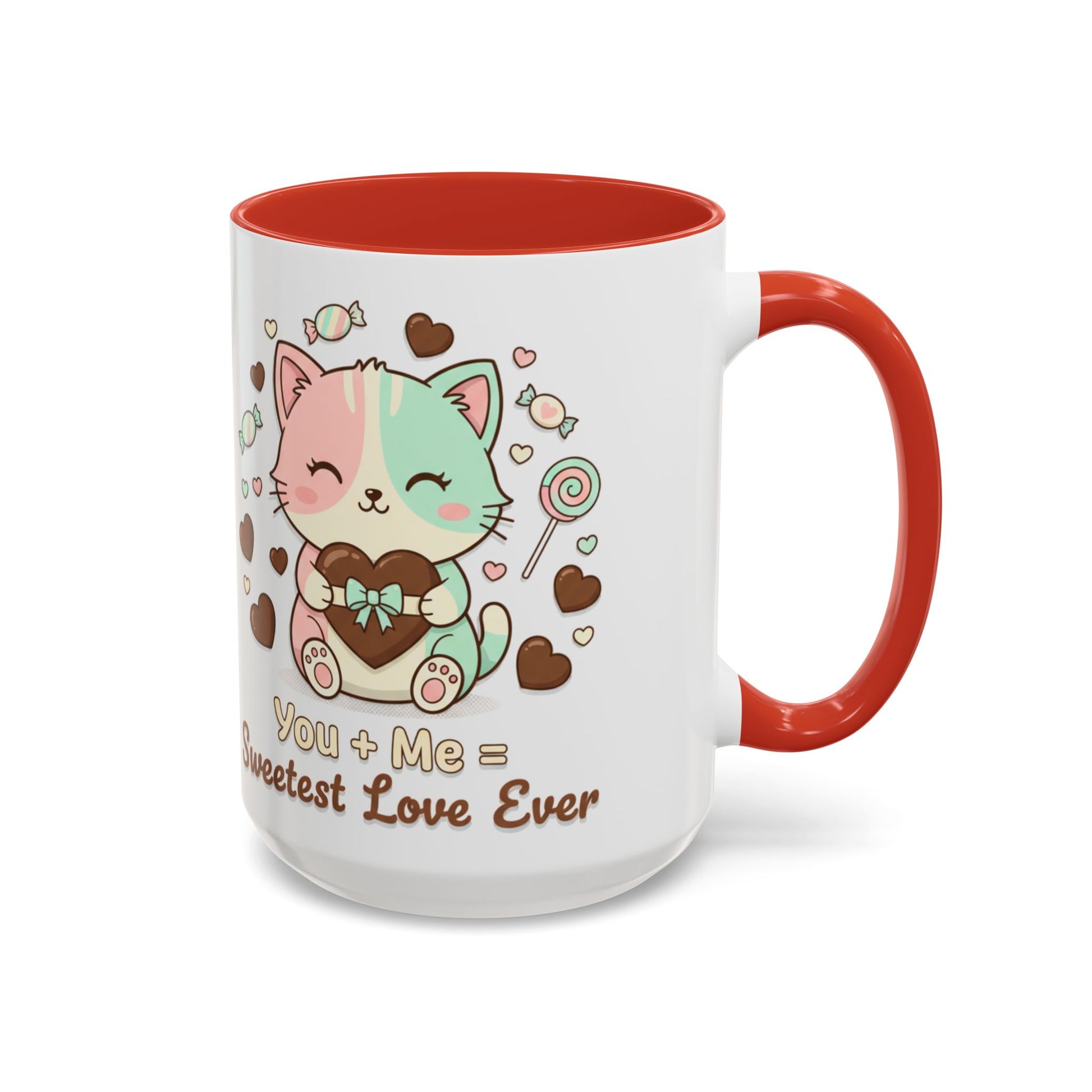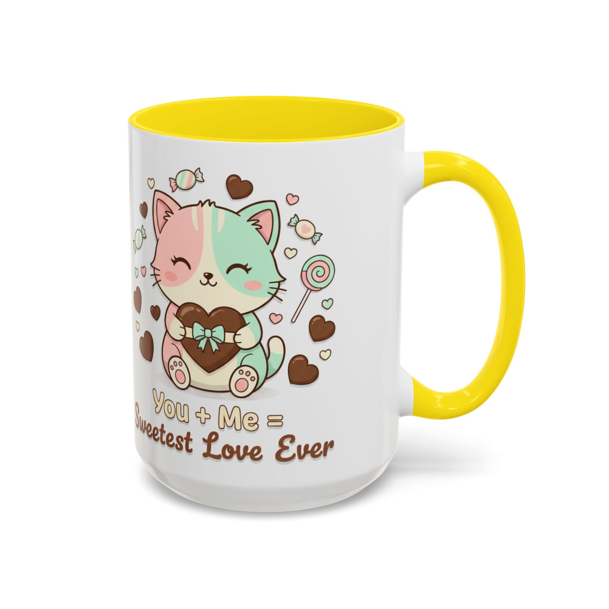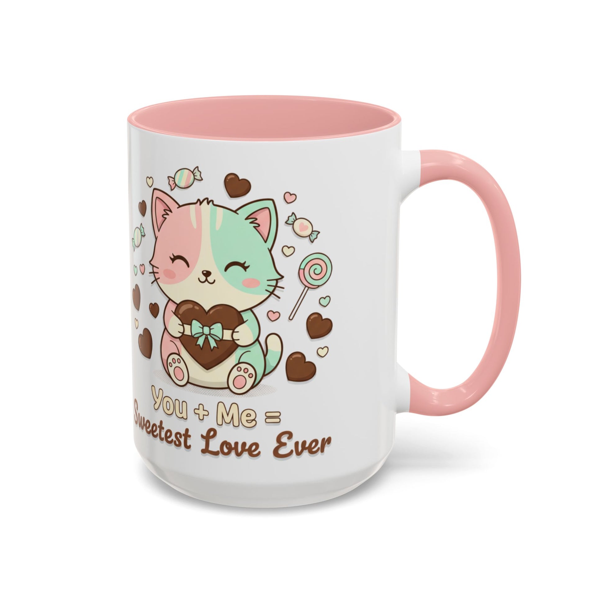 Sweetest Love Ever Accent Coffee Mug — "You + me = sweetest love ever" (11/15 oz)