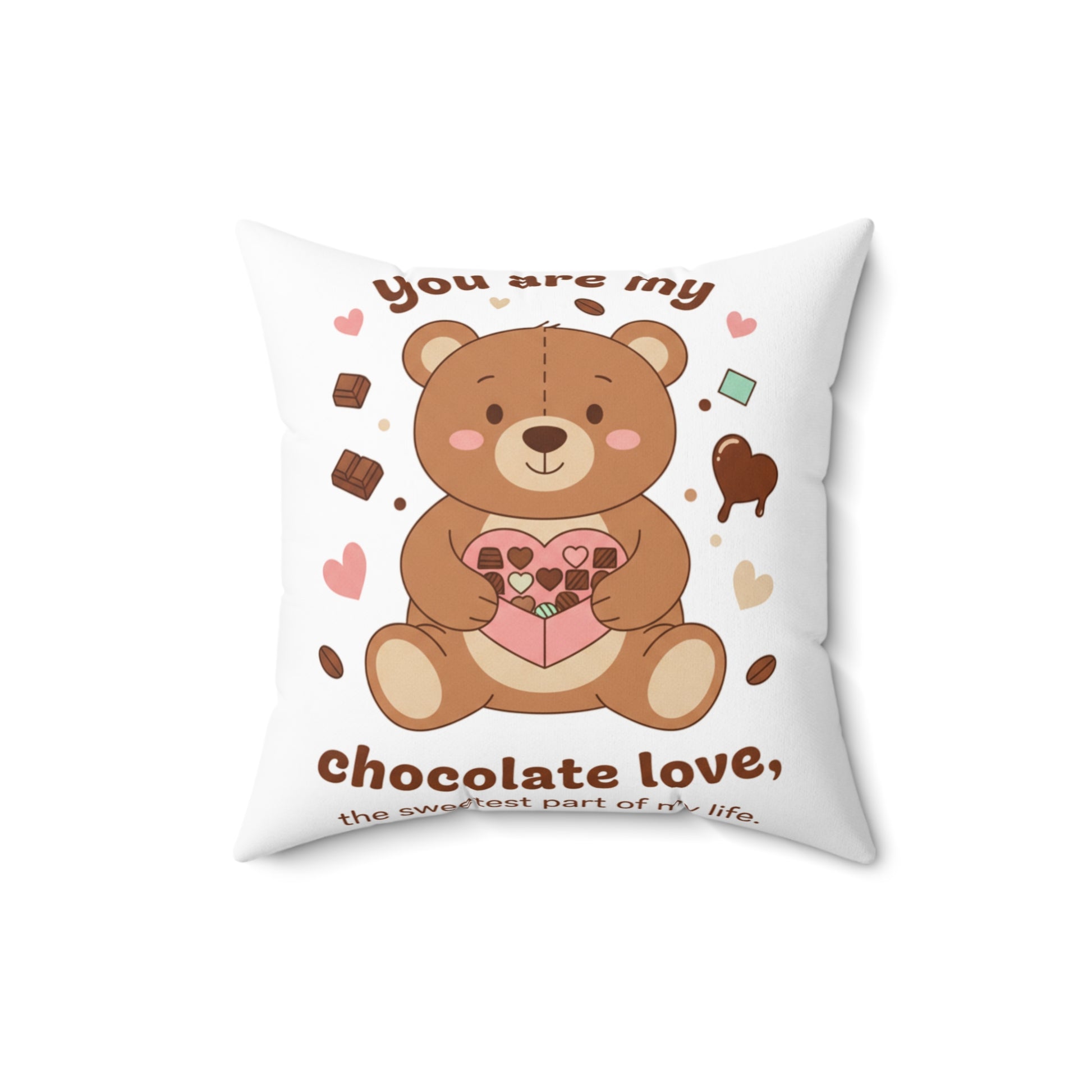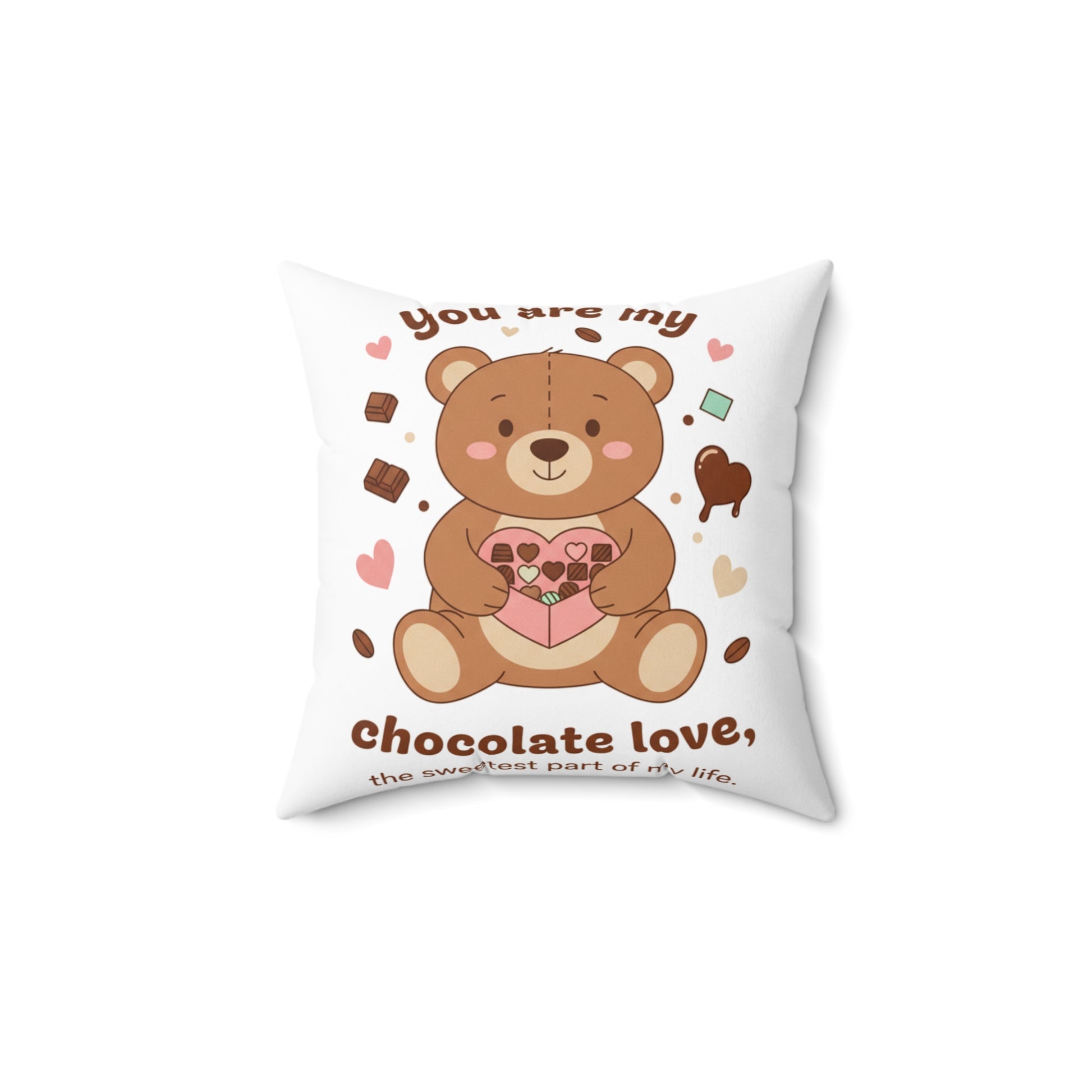 Valentine Bear Pillow — "You Are My Chocolate Love" Cute Teddy Heart Throw Pillow