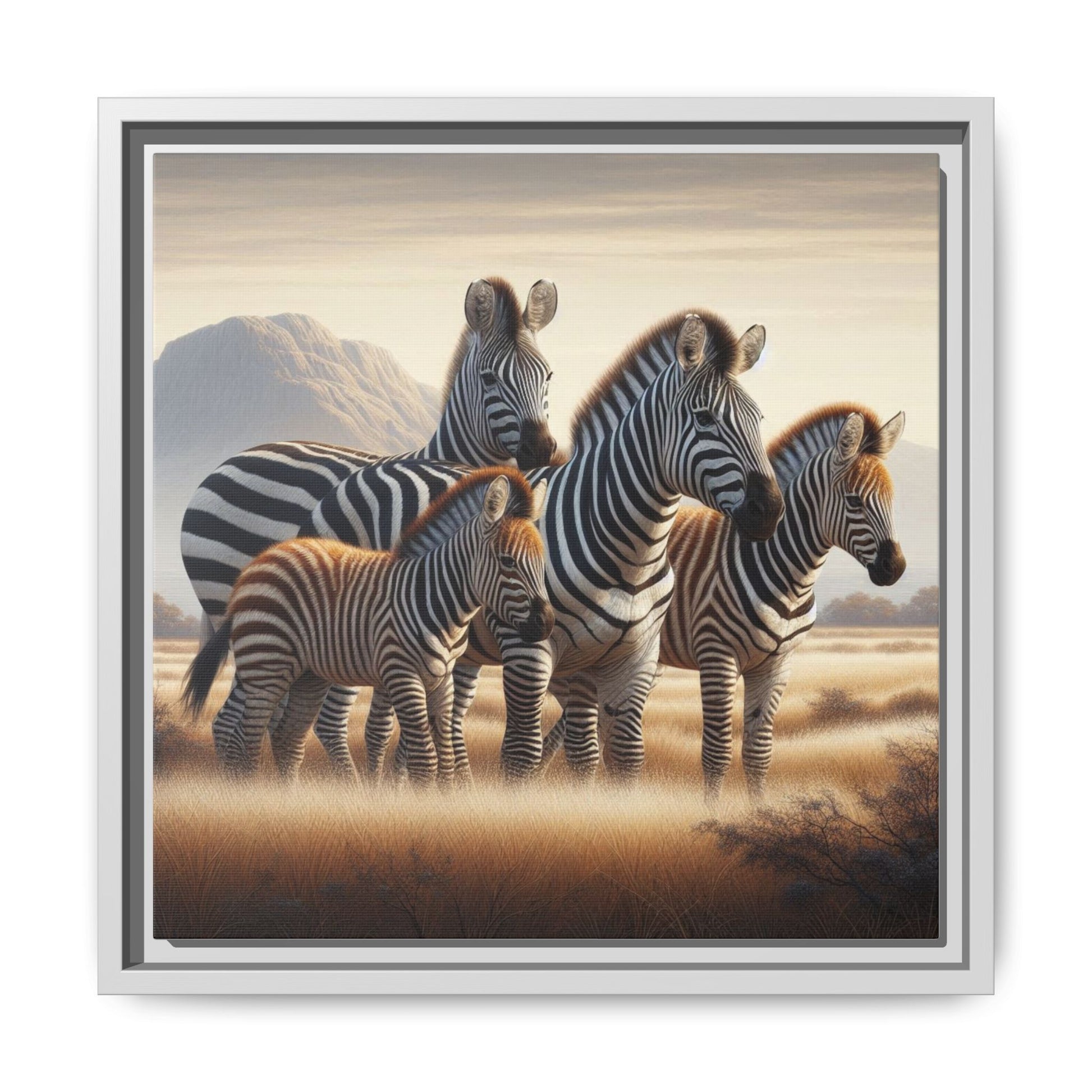 Zebra Family Matte Canvas Framed Wall Art —